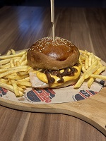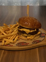 2 adet 130 gr. ev yapımı dana burger köftesi, çift cheddar peyniri, karamelize soğan, turşu, OBurger sos.