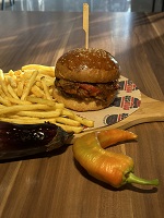 130 gr. ev yapımı dana burger köftesi, cheddar peyniri,acı sos, jelepeno biber, yeşillik, karamelize soğan, mor soğan, turşu, OBurger sos.